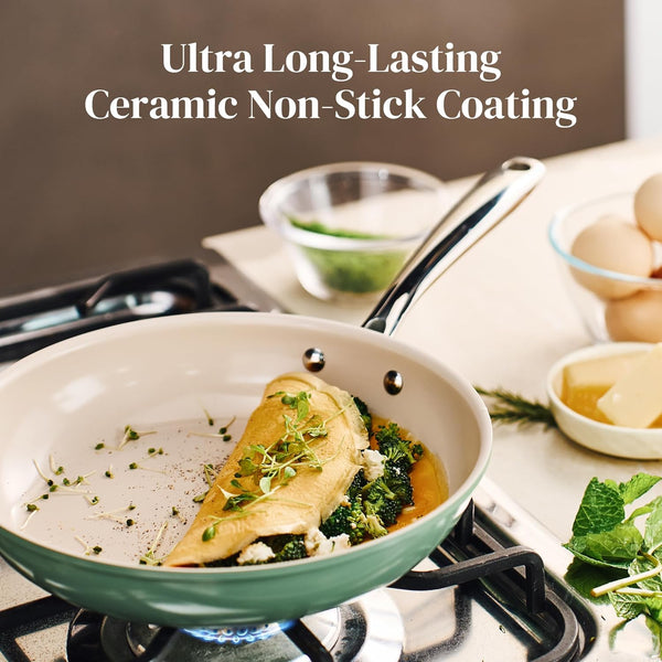 The pans feature a mineral-based triple-layer ceramic coating with no PFAS, PTFE, or PFOA, offering a safer nonstick option for everyday cooking.
