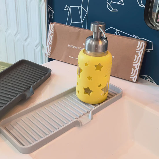 Keep your sink organized and clutter-free with this self-draining silicone organizer tray. The sloped design automatically channels water back into the sink, preventing puddles and mess. Heat-safe and dishwasher-safe for effortless cleaning, it's available in modern colors and multiple sizes to fit any sink setup. Perfect for storing sponges, brushes, and soap within arm's reach while maintaining a tidy, streamlined countertop.